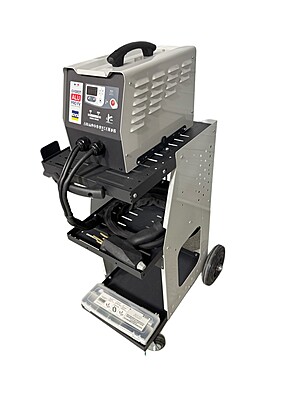 Get the Alu Pro Capacitor Discharge Unit with Universal 800 trolley for professional aluminum dent pulling. Includes heavy-duty NEMA plug and CRTE warehouse assembly. Durable, mobile, and shop-ready.