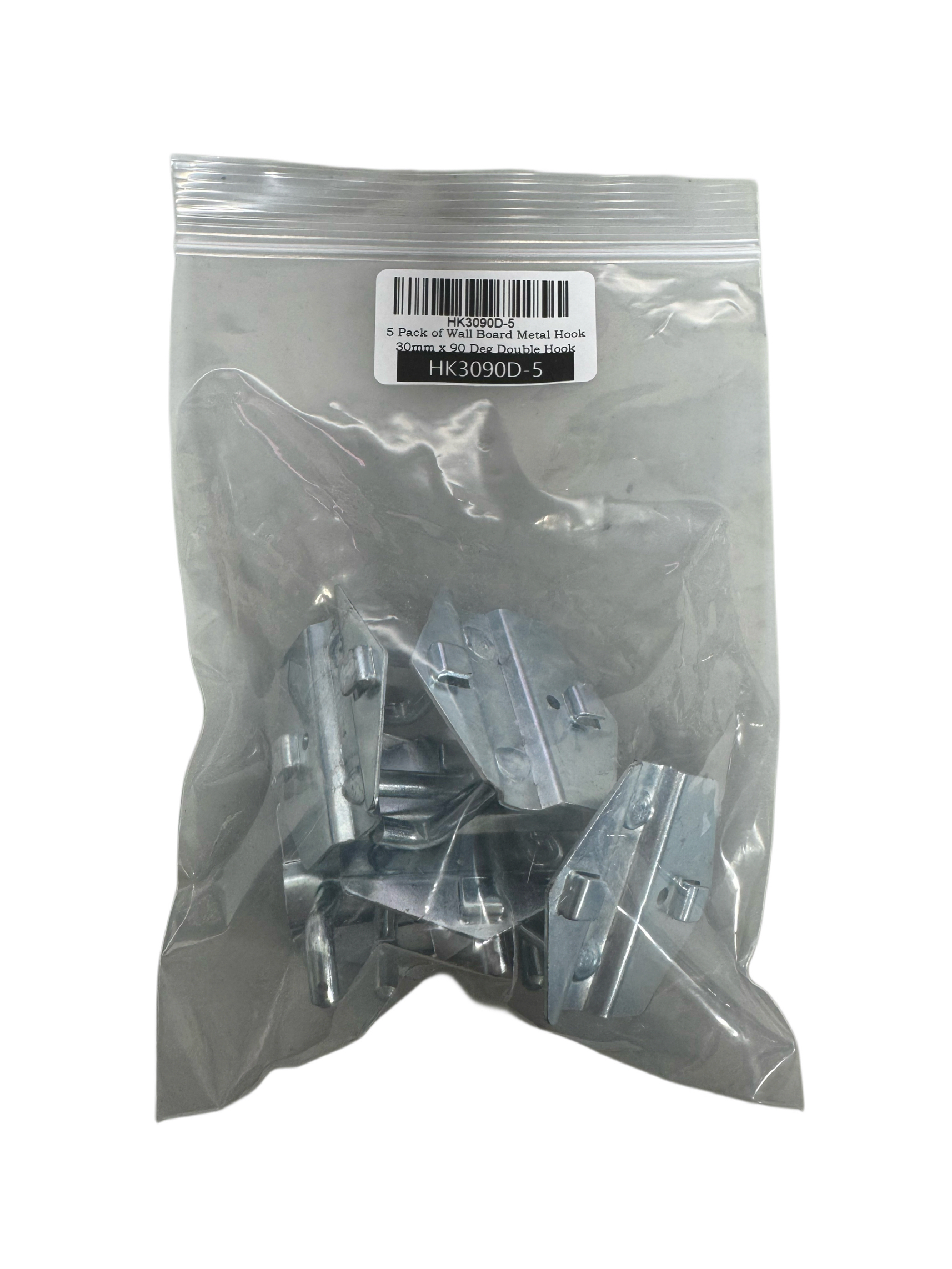 5 Pack of - Wall Board Metal Hook, 30mm 90Deg, Double Hook